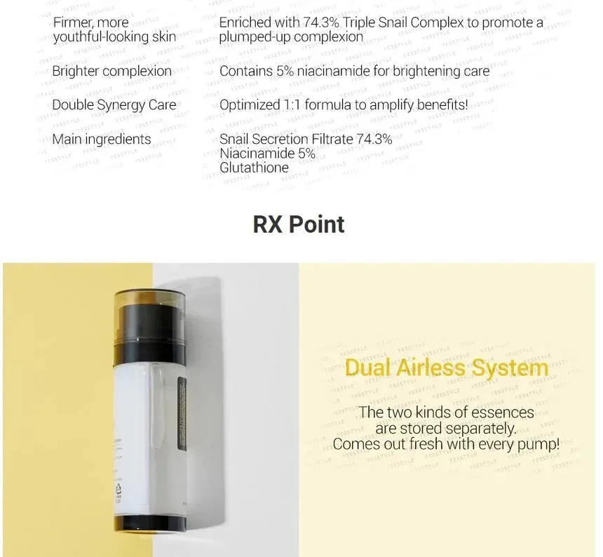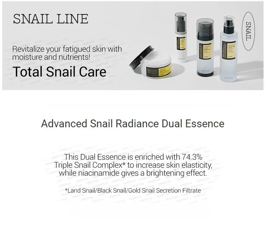 - Enriched with 74.3% Triple Snail Complex to boost skin elasticity for a glowing, plumped-up and youthful-looking complexion