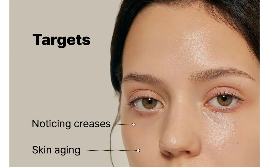 - Targets the signs of skin aging, including noticing creases, loss of skin firmness, and roughness.